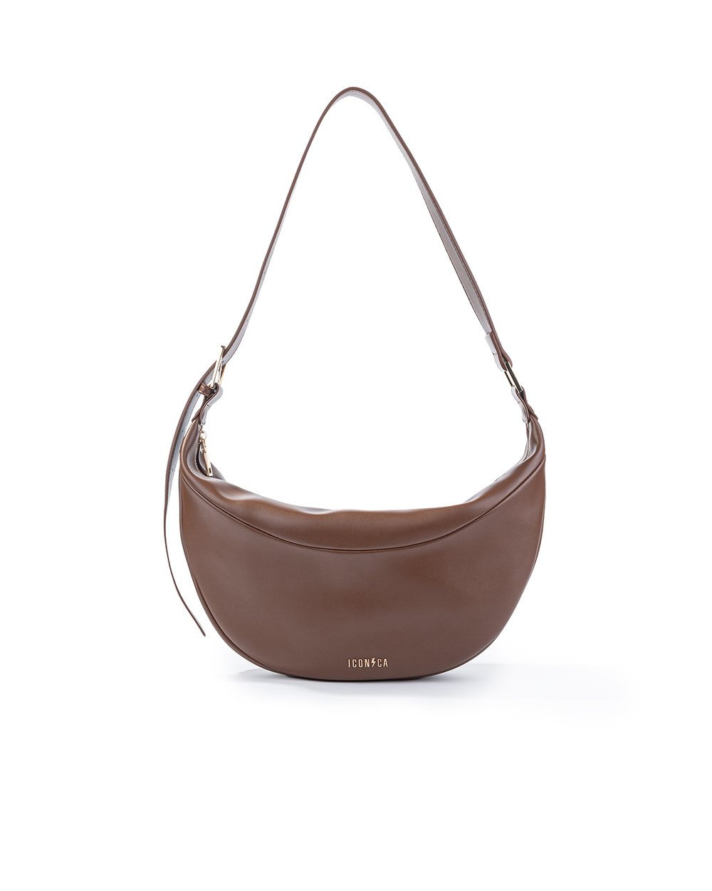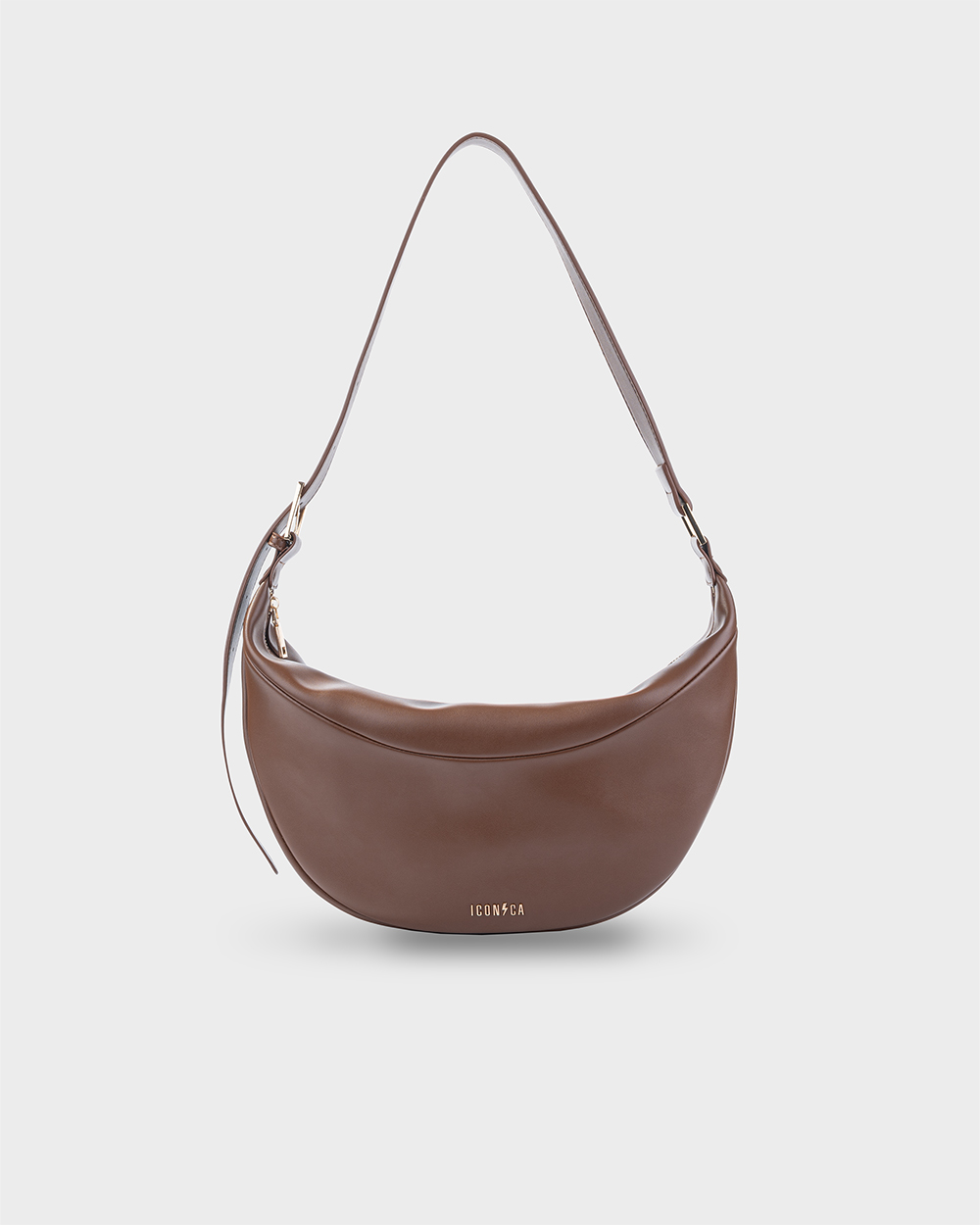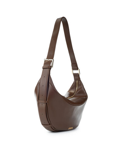 La nuance brown, intensa e avvolgente, incontra i dettagli oro creando un contrasto raffinato che valorizza ogni look, dal più casual al più strutturato.