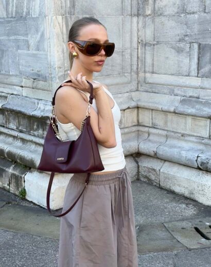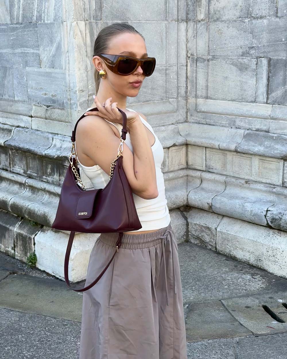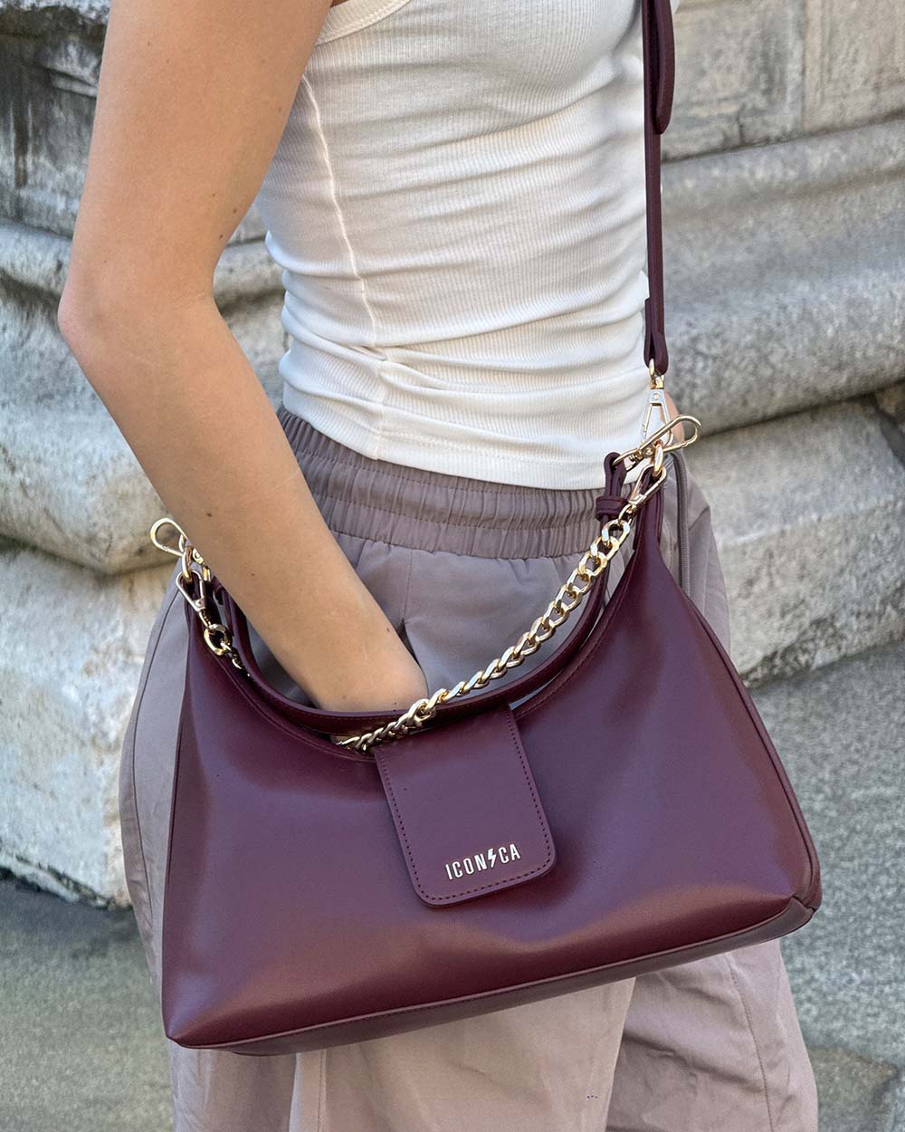 Ever Bag Burgundy con dettagli gold è intensa, chic e piena di personalità.