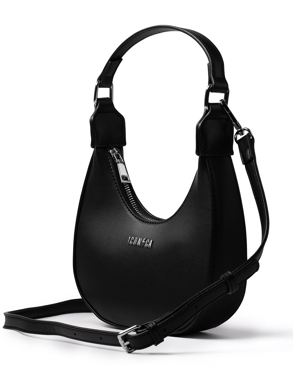 Il design essenziale è valorizzato da una cerniera e un logo frontale in metallo silver, per un contrasto moderno e raffinato.