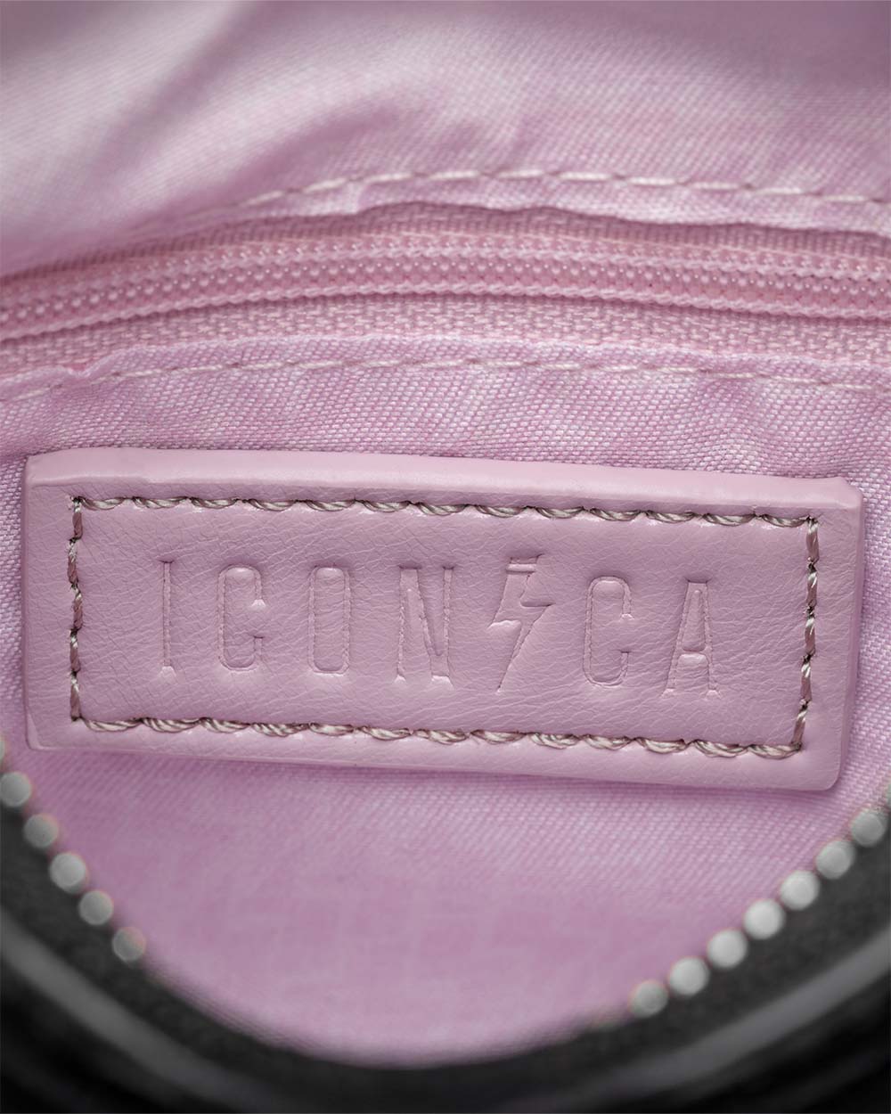 L’interno è foderato in tessuto rosa con monogram del logo, dettaglio distintivo del brand.