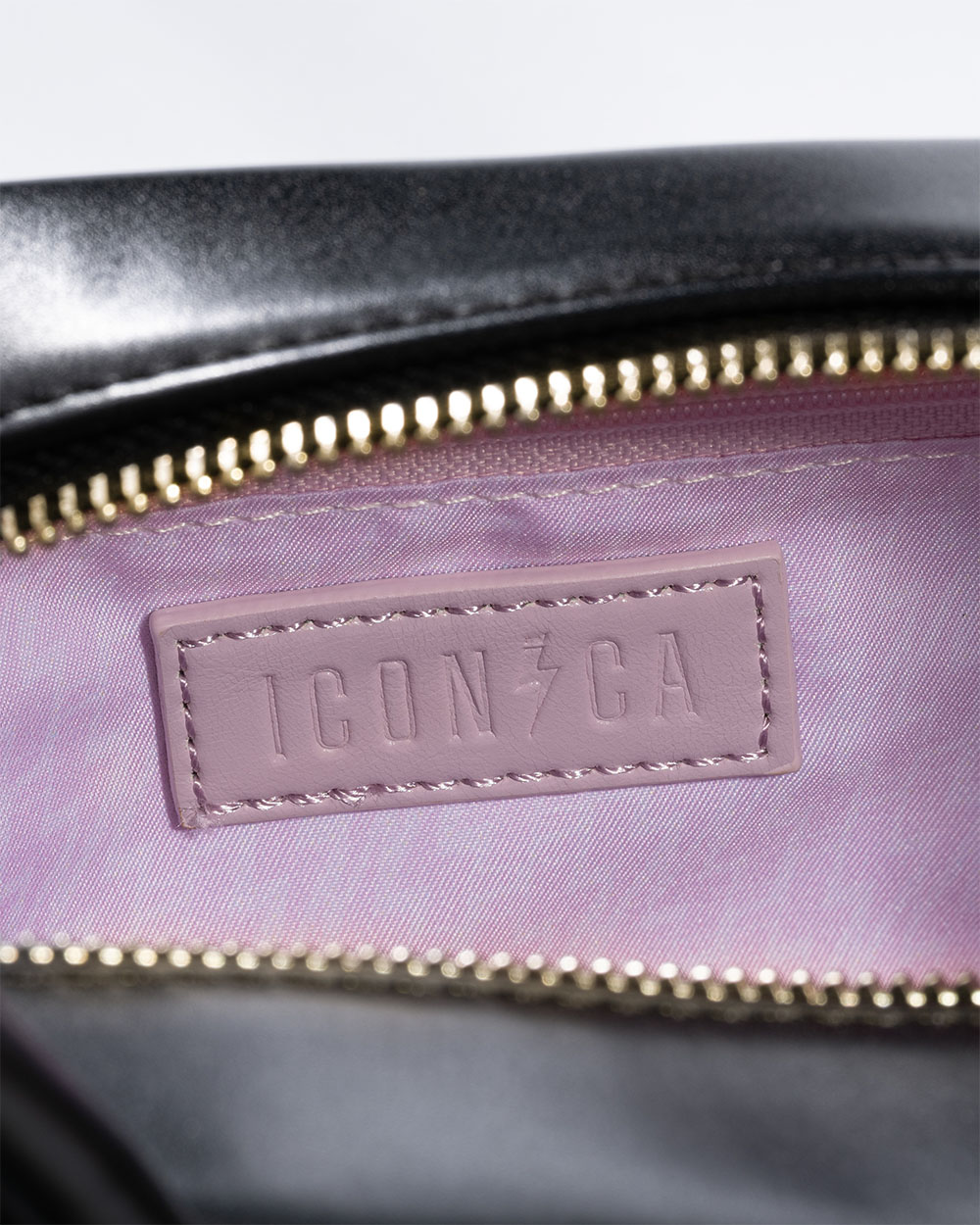 Dotata di manici resistenti, chiusura con zip dorata e logo dorato in metallo, è ideale per ogni occasione.