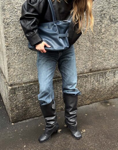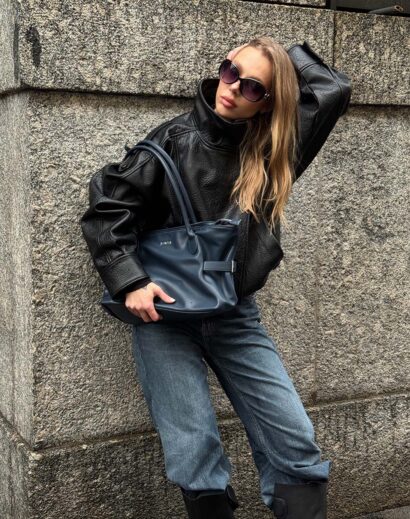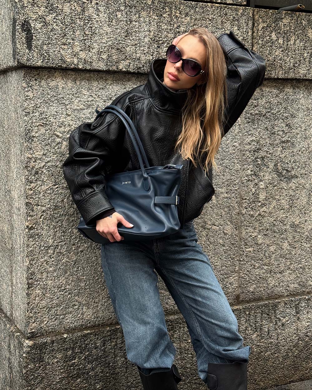 L’effetto pelle dona struttura e pulizia alle linee, mentre i dettagli silver enfatizzano l’anima contemporanea del modello.