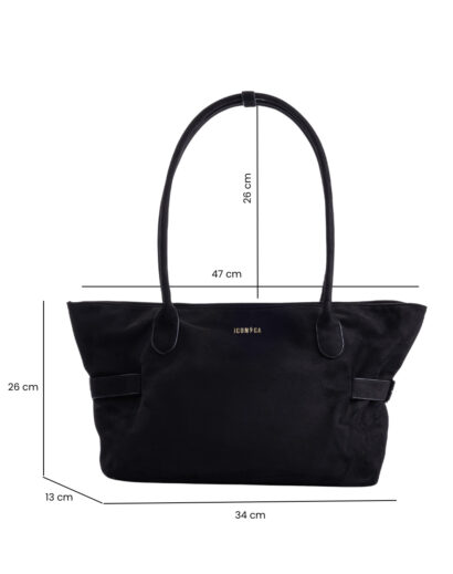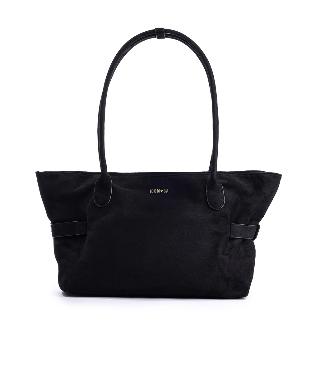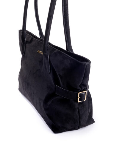 Il nero avvolgente dell’effetto suede crea una base profonda e materica, mentre i dettagli in color oro aggiungono luce e carattere, richiamando un’estetica contemporanea ma raffinata.