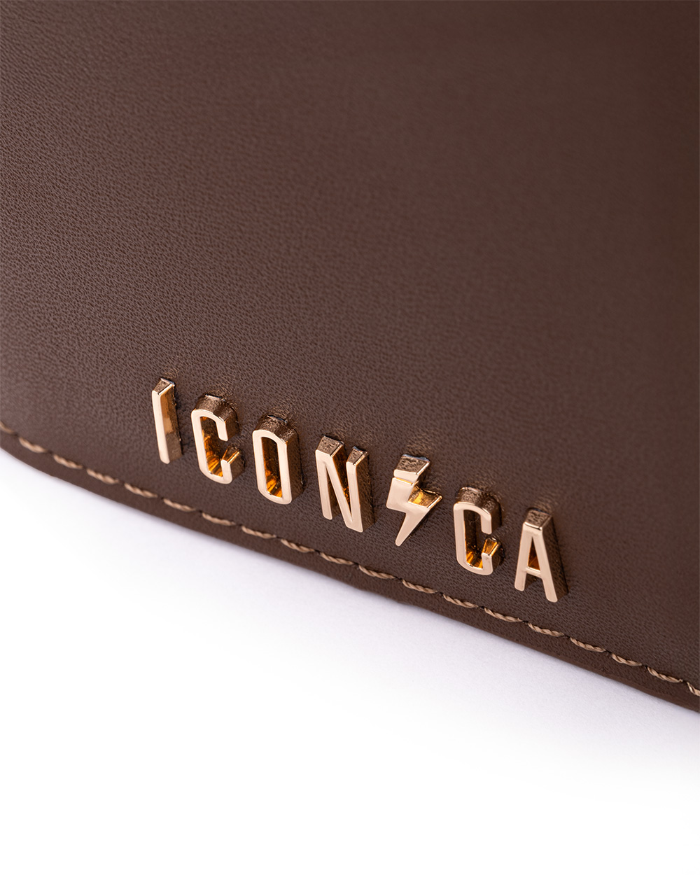 La zip e il logo frontale in metallo dorato aggiungono un tocco luminoso e raffinato senza perdere l’essenza minimal del design.