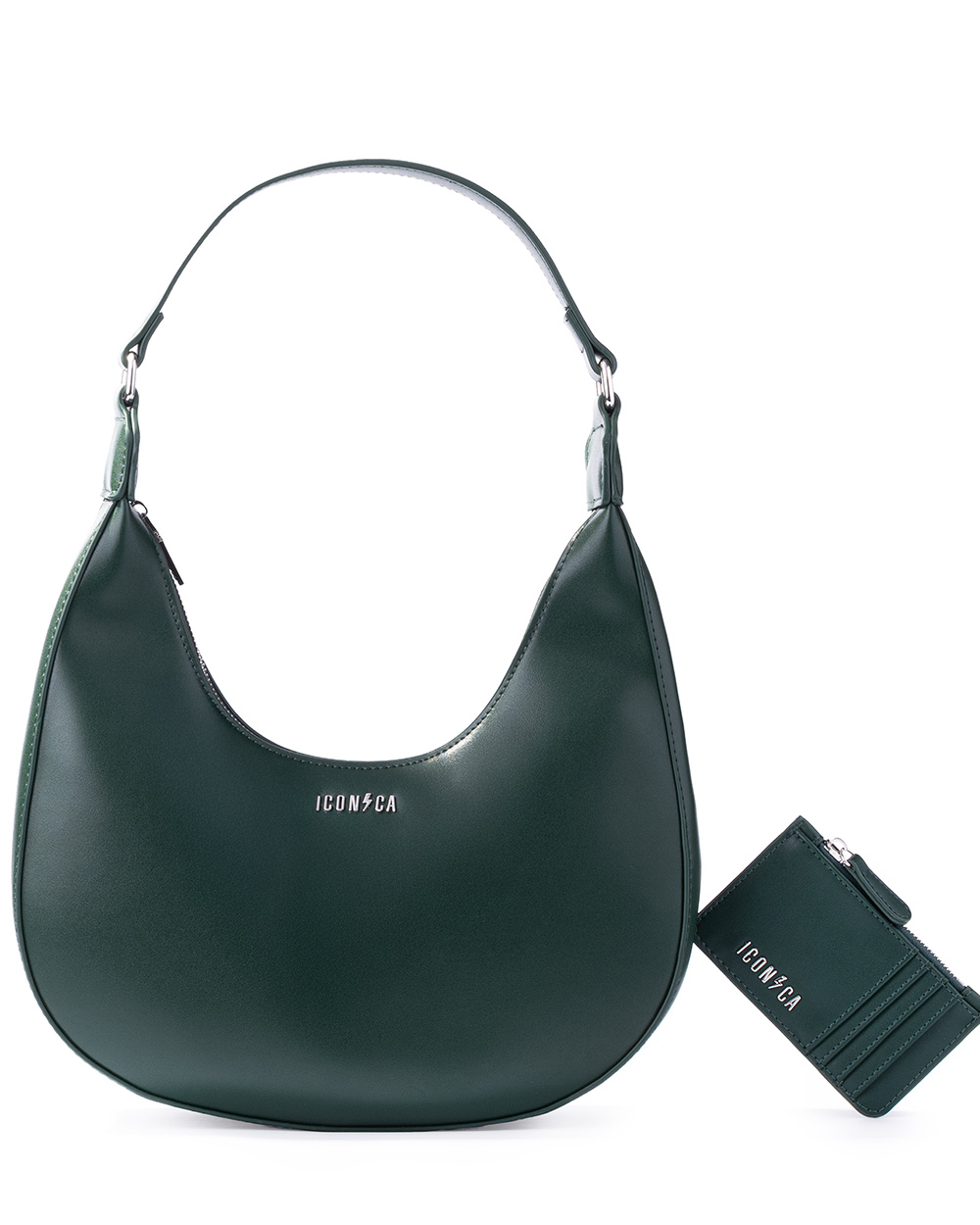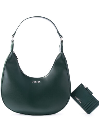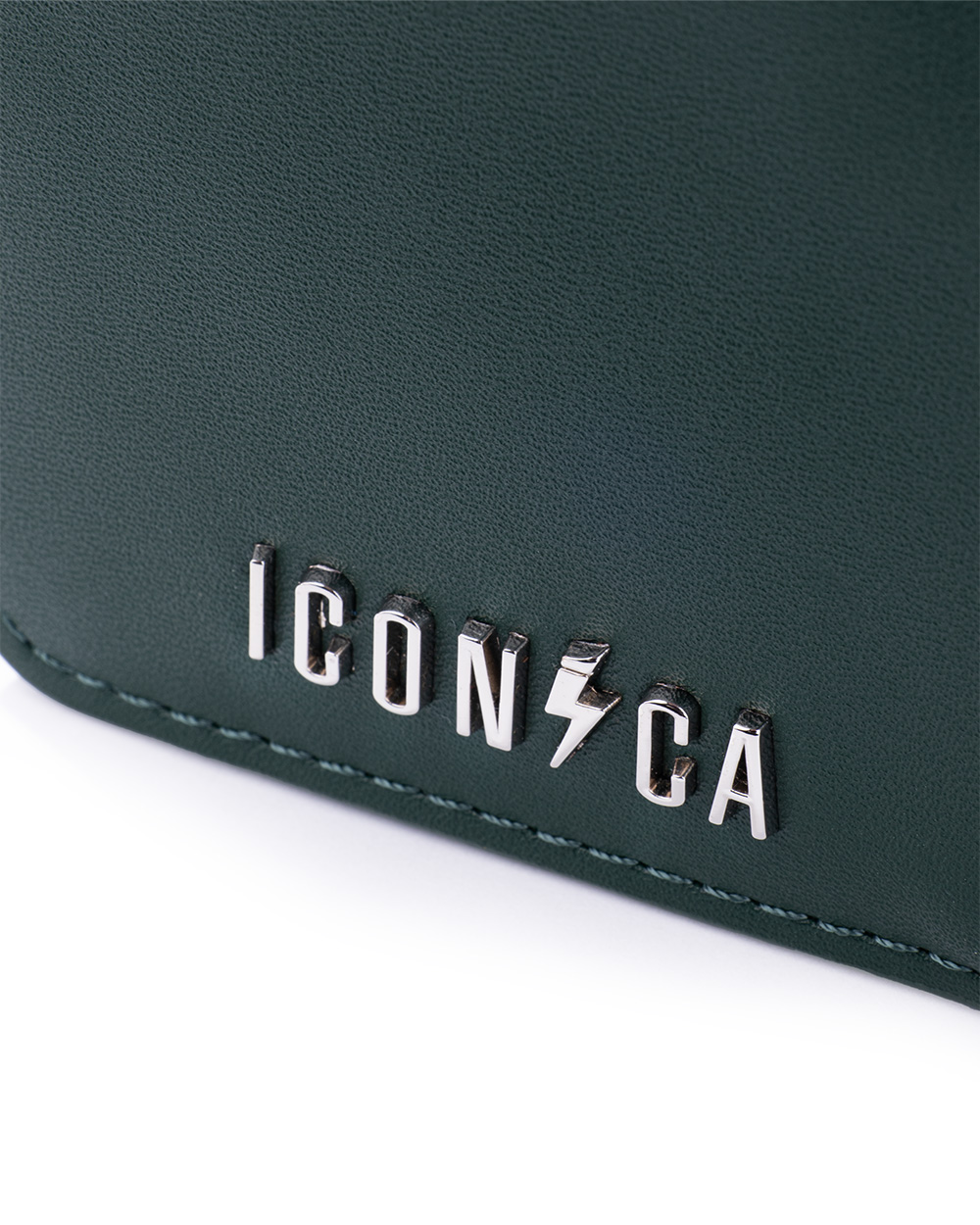 Wallet in colorazione Forest Green con zip superiore e logo frontale in metallo dorato.